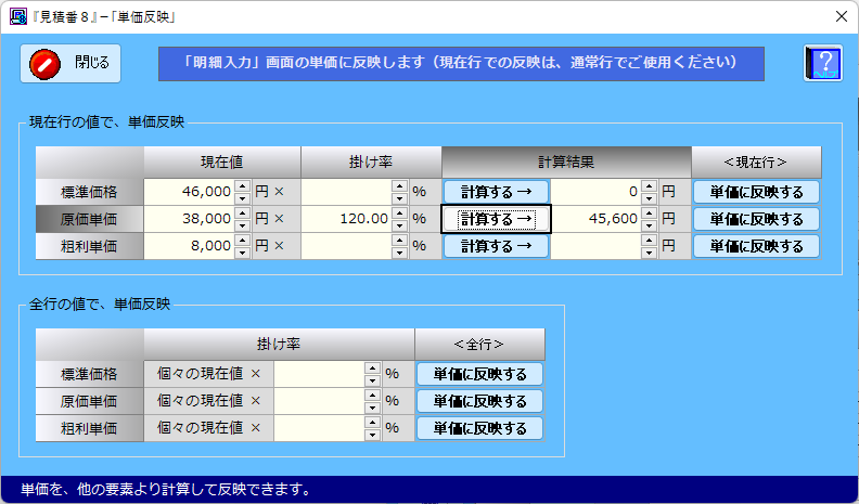 単価反映画面