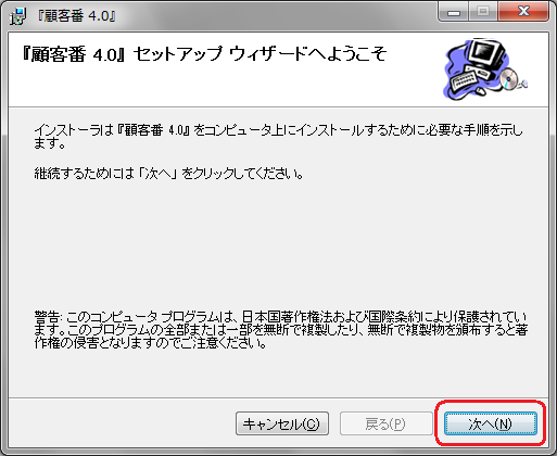 | 1>「旧製品セットアップウィザードへようこそ」のウインドウが表示されますので、[次へ(N)]ボタンをクリックしてください。 |